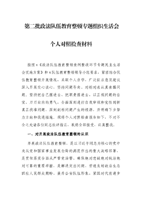 第二批政法队伍教育整顿专题组织生活会个人对照检查材料.docx