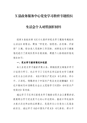 X县政务服务中心党史学习教育专题组织生活会个人对照剖析材料.docx