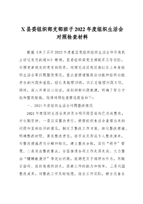 X县委组织部支部班子2022年度组织生活会对照检查材料.docx