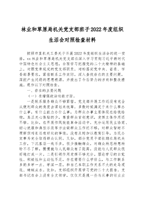 林业和草原局机关党支部班子2022年度组织生活会对照检查材料.docx