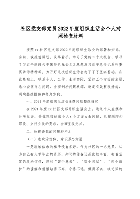 社区党支部党员2022年度组织生活会个人对照检查材料.docx