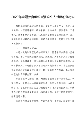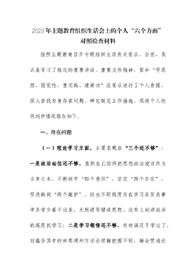2023年主题教育组织生活会上的个人“六个方面”对照检查材料.docx