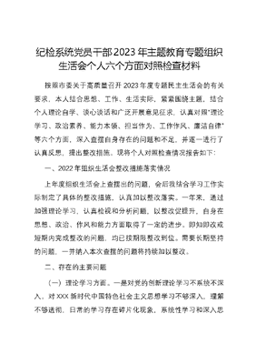纪检系统党员干部2023年主题教育专题组织生活会个人六个方面对照检查材料.docx