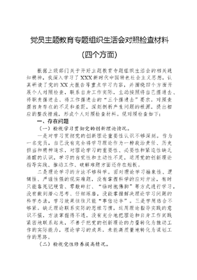 党员主题教育专题组织生活会对照检查材料(四个方面).docx