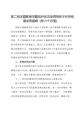 第二批主题教育专题组织生活会领导班子对照检查发言提纲(新六个对照方面).docx