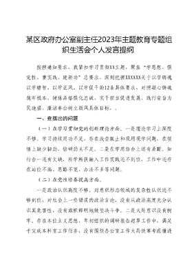 某区政府办公室副主任2023年主题教育专题组织生活会个人发言提纲.docx