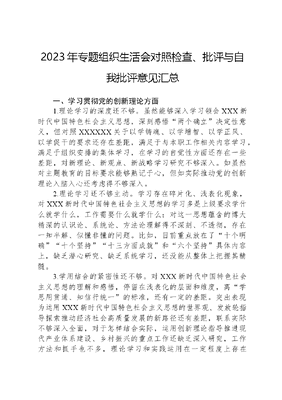 2023年专题组织生活会对照检查、批评与自我批评意见汇总.docx