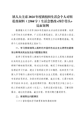 镇人大主席2024年度镇组织生活会个人对照检查材料生活会整改 四个带头 反面案例.docx