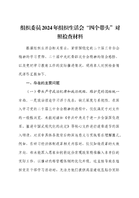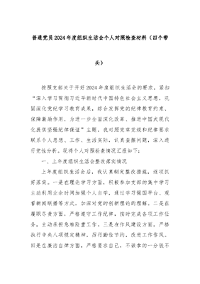 普通党员2024年度组织生活会个人对照检查材料(四个带头).docx