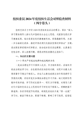 组织委员2024年度组织生活会对照检查材料(四个带头).docx