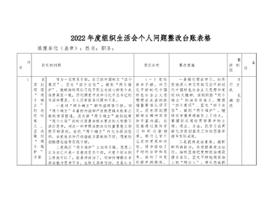 2022年度组织生活会个人问题整改台账表格.docx