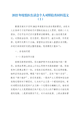 (2篇)2022年度组织生活会个人对照检查材料范文.docx