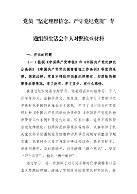 党员“坚定理想信念,严守党纪党规”专题组织生活会个人对照检查材料.docx