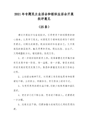 (25条)专题民主生活会、组织生活会批评与自我批评意见.docx