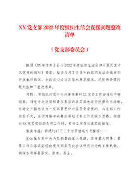 XX党支部2022年度组织生活会查摆问题整改清单.docx