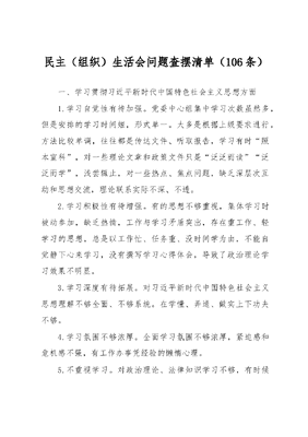 (106条)民主(组织)生活会问题查摆清单.docx