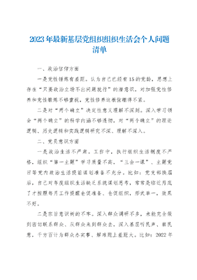 2023年最新基层党组织组织生活会个人问题清单.docx