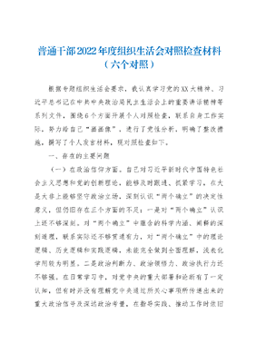 普通干部2022年度组织生活会对照检查材料(六个对照).docx