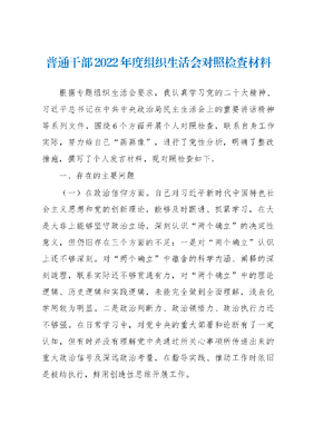普通干部2022年度组织生活会对照检查材料.docx