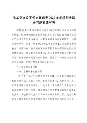 党工委办公室党支部班子2022年度组织生活会对照检查材料.docx
