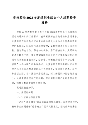 学校校长2023年度组织生活会个人对照检查材料.docx