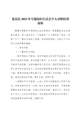 党员在2023年专题组织生活会个人对照检查材料.docx