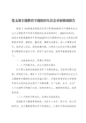 党支部主题教育专题组织生活会开展情况报告.docx