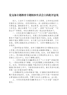 党支部主题教育专题组织生活会上的批评意见.docx