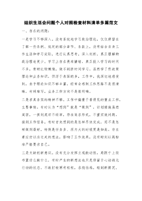 组织生活会问题个人对照检查材料清单多篇.docx