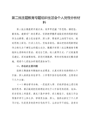 第二批主题教育专题组织生活会个人党性分析材料.docx