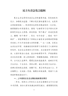 领导干部民主生活会发言提纲.docx