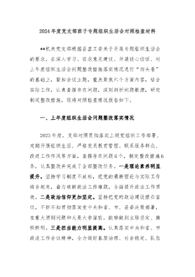 2024年度党支部班子专题组织生活会对照检查材料.docx
