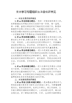 党史学习教育组织生活会批评与相互批评意见汇编.docx