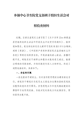 乡镇中心卫生院党支部班子组织生活会对照检查材料.docx