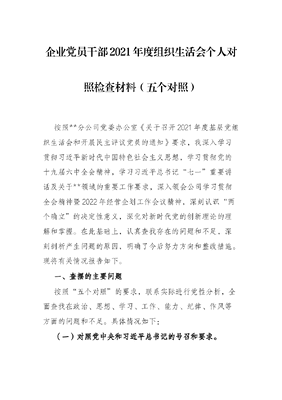 企业党员干部2021年度组织生活会个人对照检查材料(五个对照).docx