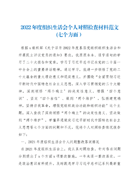 2022年度组织生活会个人对照检查材料范文(七个方面).docx