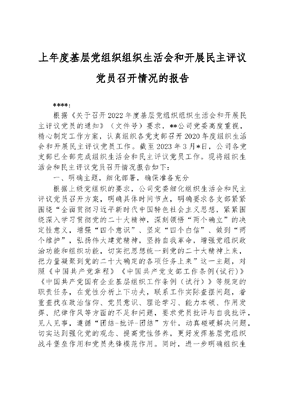 上年度基层党组织组织生活会和开展民主评议党员召开情况的报告.docx