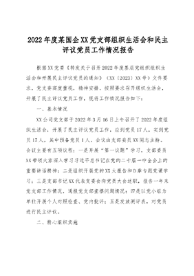 2022年度某国企XX党支部组织生活会和民主评议党员工作情况报告.docx