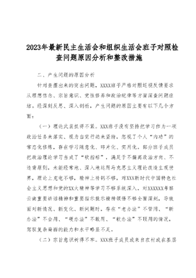 2023年最新民主生活会和组织生活会班子对照检查问题原因分析和整改措施.docx