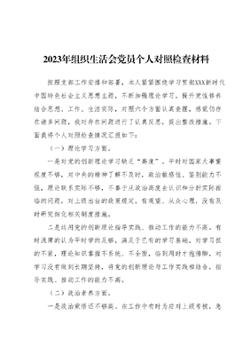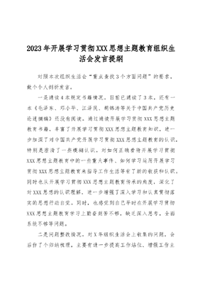 2023年开展学习贯彻习近平新时代中国特色社会主义思想主题教育组织生活会发言提纲.docx