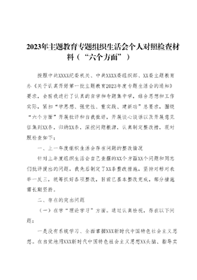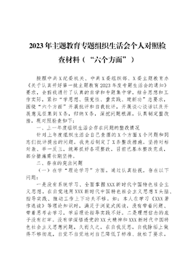2023年主题教育专题组织生活会个人对照检查材料(“六个方面”).docx