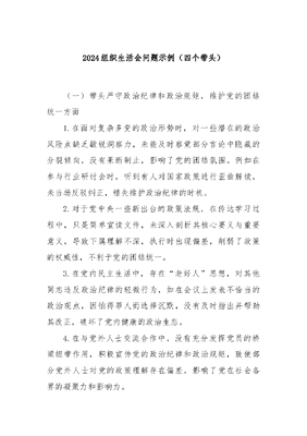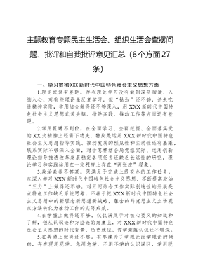 主题教育专题民主生活会、组织生活会查摆问题、批评和自我批评意见汇总(6个方面27条).docx