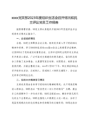 xxxx党支部2023年度组织生活会召开情况和民主评议党员工作报告.docx