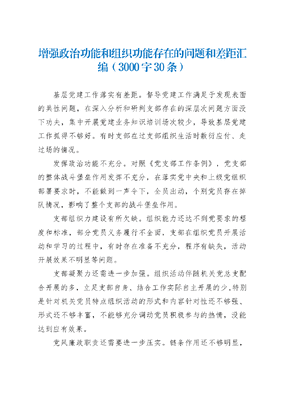 (30条)增强政治功能和组织功能存在的问题和差距汇编 组织生活会(3000字)..docx