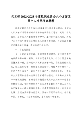 党支部2022-2023年度组织生活会六个方面党员个人对照检查材料.docx