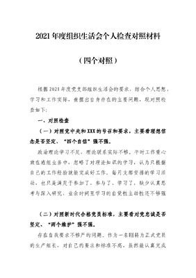 2021年度组织生活会个人检查对照材料(四个对照).docx