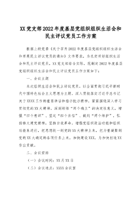 XX党支部2022年度基层党组织组织生活会和民主评议党员工作方案.docx