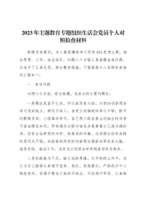 2023年主题教育专题组织生活会党员个人对照检查材料.docx