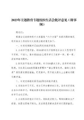 2023年主题教育专题组织生活会批评意见(附事例).docx