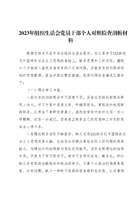 2023年组织生活会党员干部个人对照检查剖析材料.docx